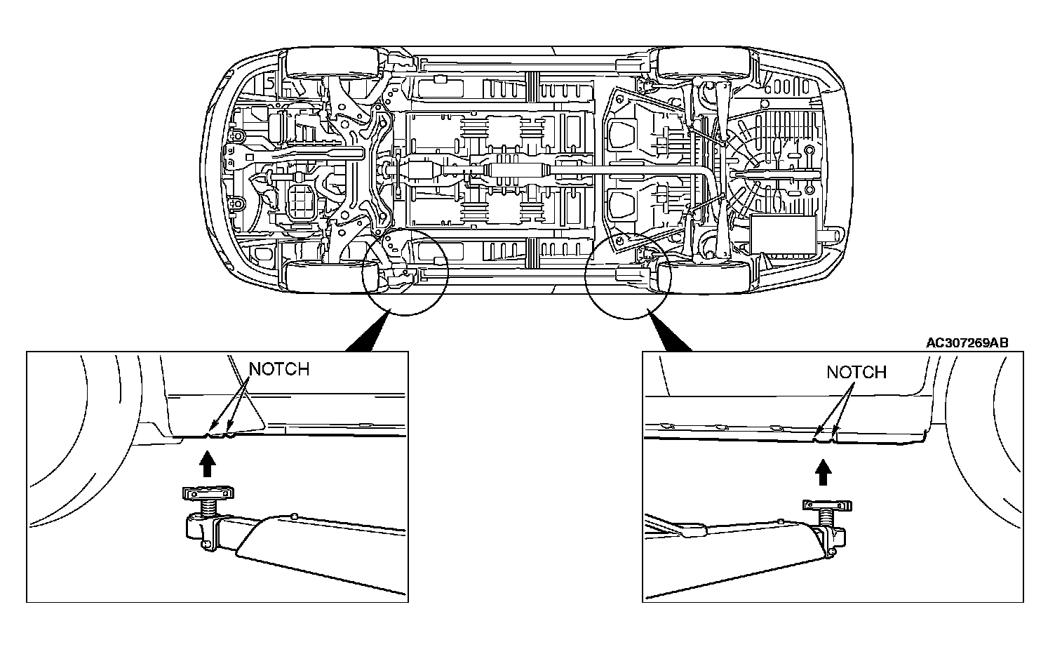 Special care should be taken when raising the vehicle on a frame contact type hoist. The hoist must be equipped with the proper adapters in order to support the vehicle at the proper locations.