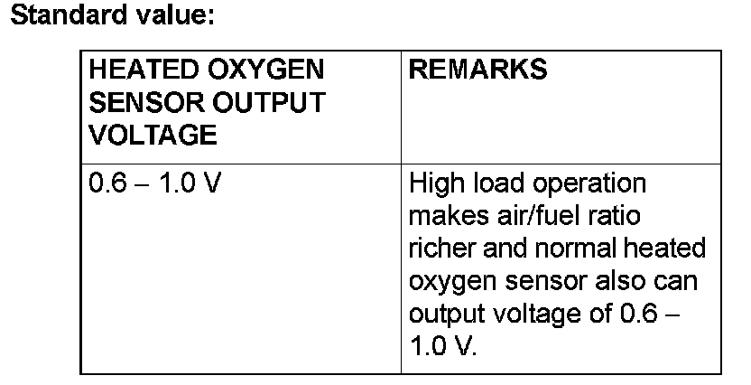 - If the temperature of sensing area does not reach the high temperature [of approximately 400 °C (752 °F) or more] even though the heated oxygen sensor is normal, the output voltage would be possibly low in spite of the rich air-fuel ratio.