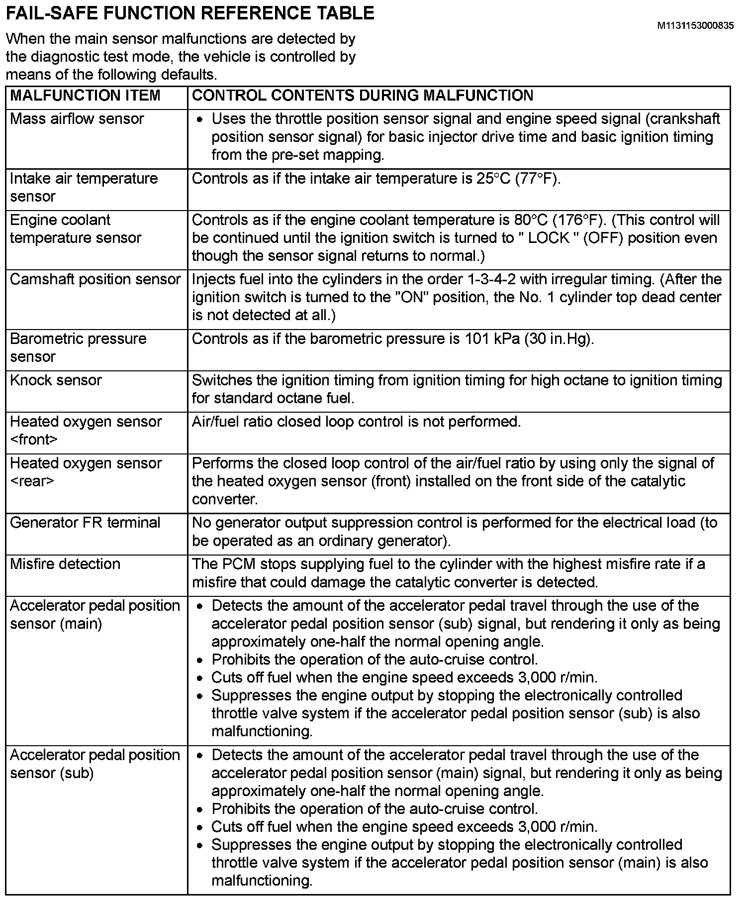 Fail-Safe Function Reference Table (Part 2):