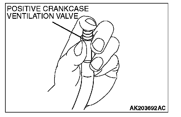 POSITIVE CRANKCASE VENTILATION SYSTEM CHECK1. Remove the positive crankcase ventilation (PCV) valve from the rocker cover, then reconnect the PCV valve to the vacuum supply hose.
