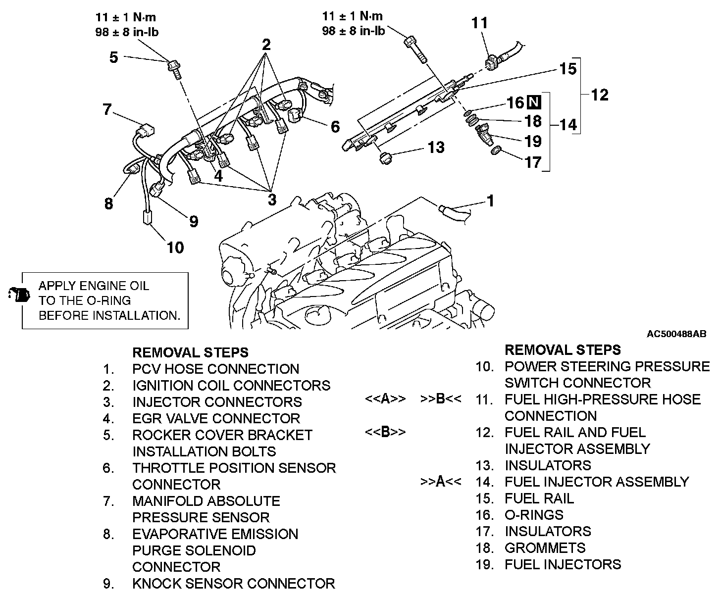 [[B]] FUEL RAIL AND FUEL INJECTOR ASSEMBLY REMOVAL