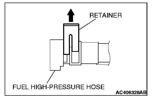1. Pull up the retainer of fuel high-pressure hose to unlock before installing.