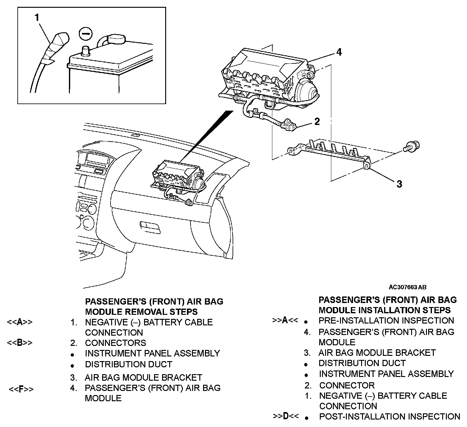 [[F]] PASSENGER'S (FRONT) AIR BAG MODULE REMOVAL