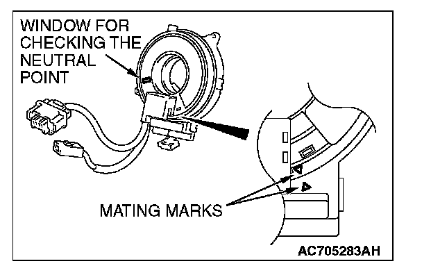 WARNING: Ensure that the clock spring's mating marks are properly aligned. If not, the steering wheel may not rotate completely during a turn, or the flat cable in the clock spring could be damaged, This would prevent normal SRS operation and possibly cause serious injury to the driver.