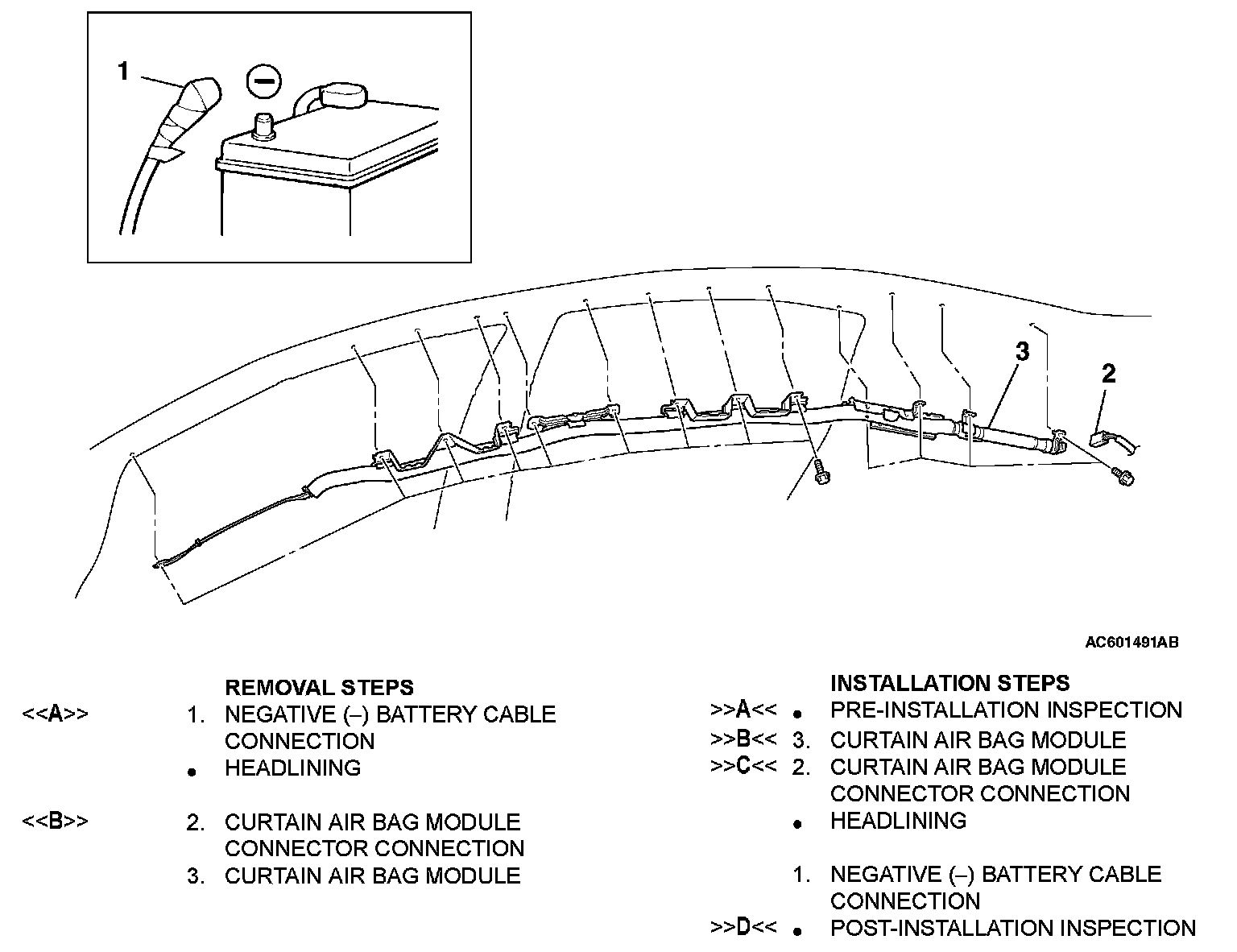 1. When installing the new curtain air bag module, refer to "INSPECTION".