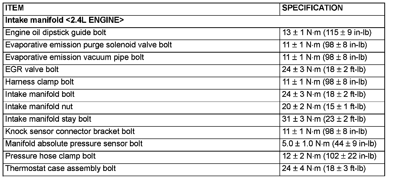 Intake Manifold - Fastener Tightening Specifications:
