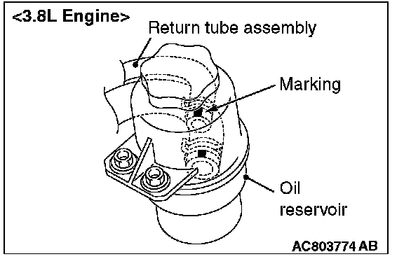1. Install the return tube assembly so that the marking is positioned as shown in the illustration.