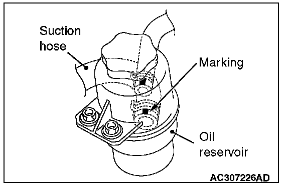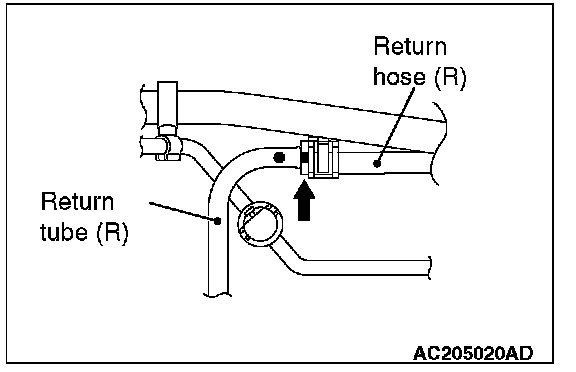 Install the return hose (R) so that the markings are positioned as shown in the illustration.