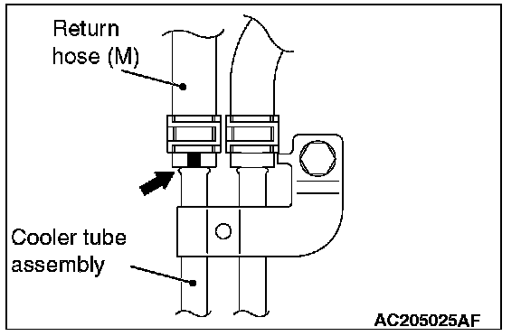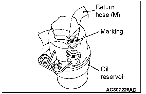 Install the return hose (M) so that the markings are positioned as shown in the illustration.