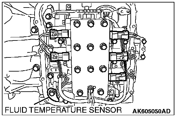 11. Disconnect the solenoid valve harness from the valve body by disconnecting the fluid temperature sensor and all the connectors.