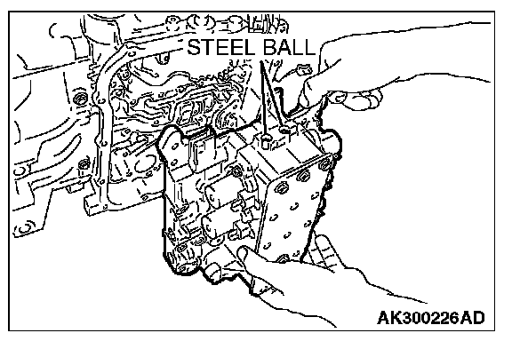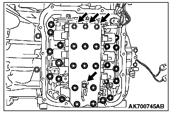 12. Remove the valve body mounting bolts (twenty seven pieces).