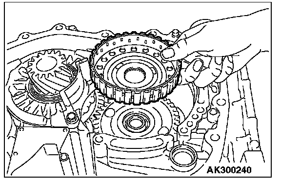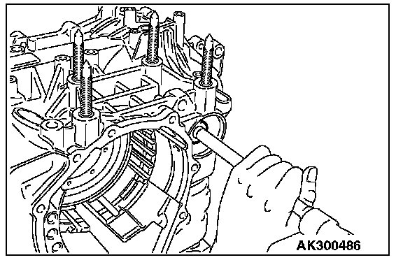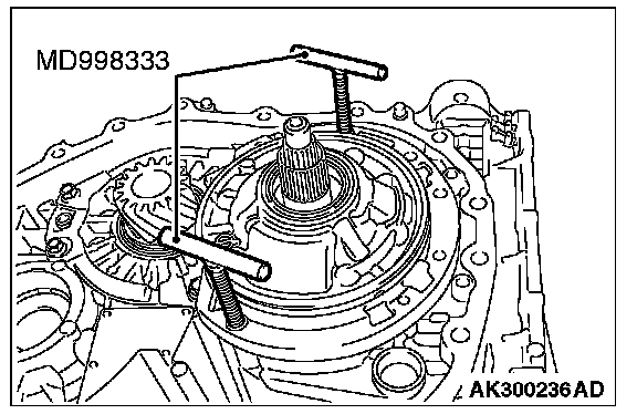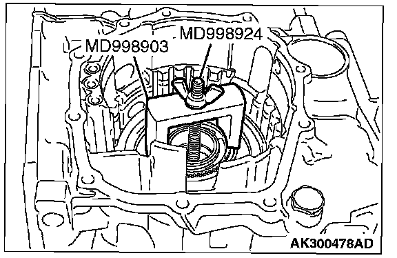 1) Using special tools MD998903 and MD998924, compress the one-way clutch inner race.