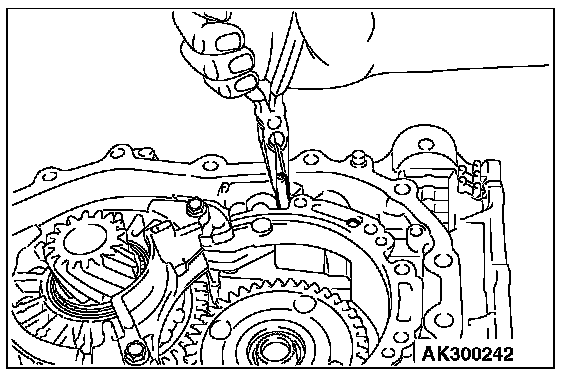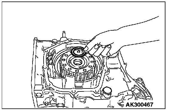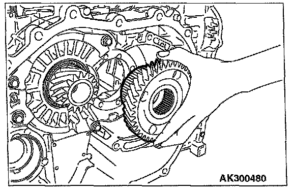 20. Remove the differential bearing outer race and spacer from the torque converter housing.