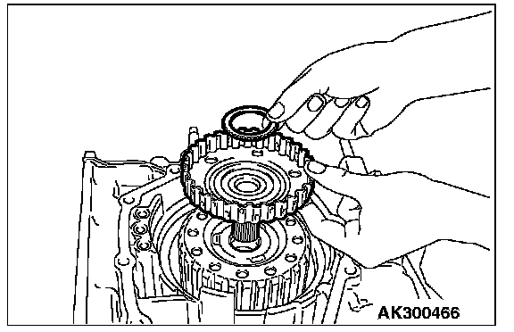 4) Remove the one-way clutch inner race, O-ring, spring retainer, return spring and low-reverse brake piston.