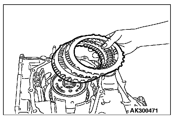 49. Remove the brake plates (five pieces), brake discs (six pieces) and pressure plate.