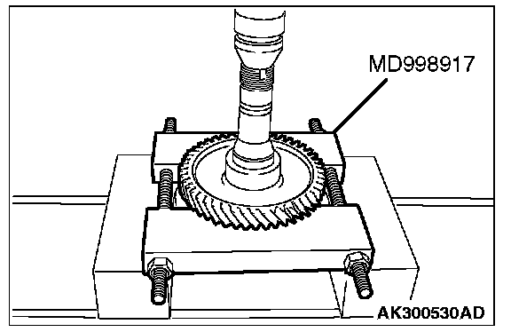 1. Support the transfer driven gear with general service tool or special tool MD998917, and then set them on the press.