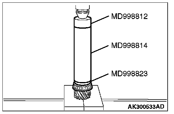 2. Using special tools MD998823, MD998812 and MD998814, press in the taper roller bearing.