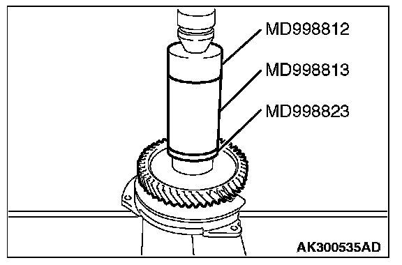 2. Using special tools MD998823, MD998812 and MD998813, press in the transfer driven gear.