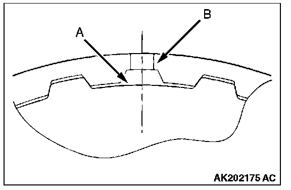 1. Assemble the intermediate plate, cushion plate, clutch plates, clutch discs, and clutch reaction plates with their non-toothed portions (A in the illustration) aligned with the hole (B in the illustration) formed in a crest of the direct clutch retainer.