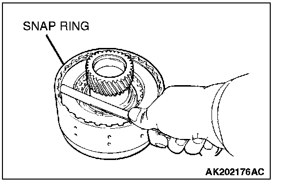 3. Check the clearance between the snap ring and clutch reaction plate. If the clearance is not within the standard value range, make adjustment by selecting a snap ring of an appropriate thickness.