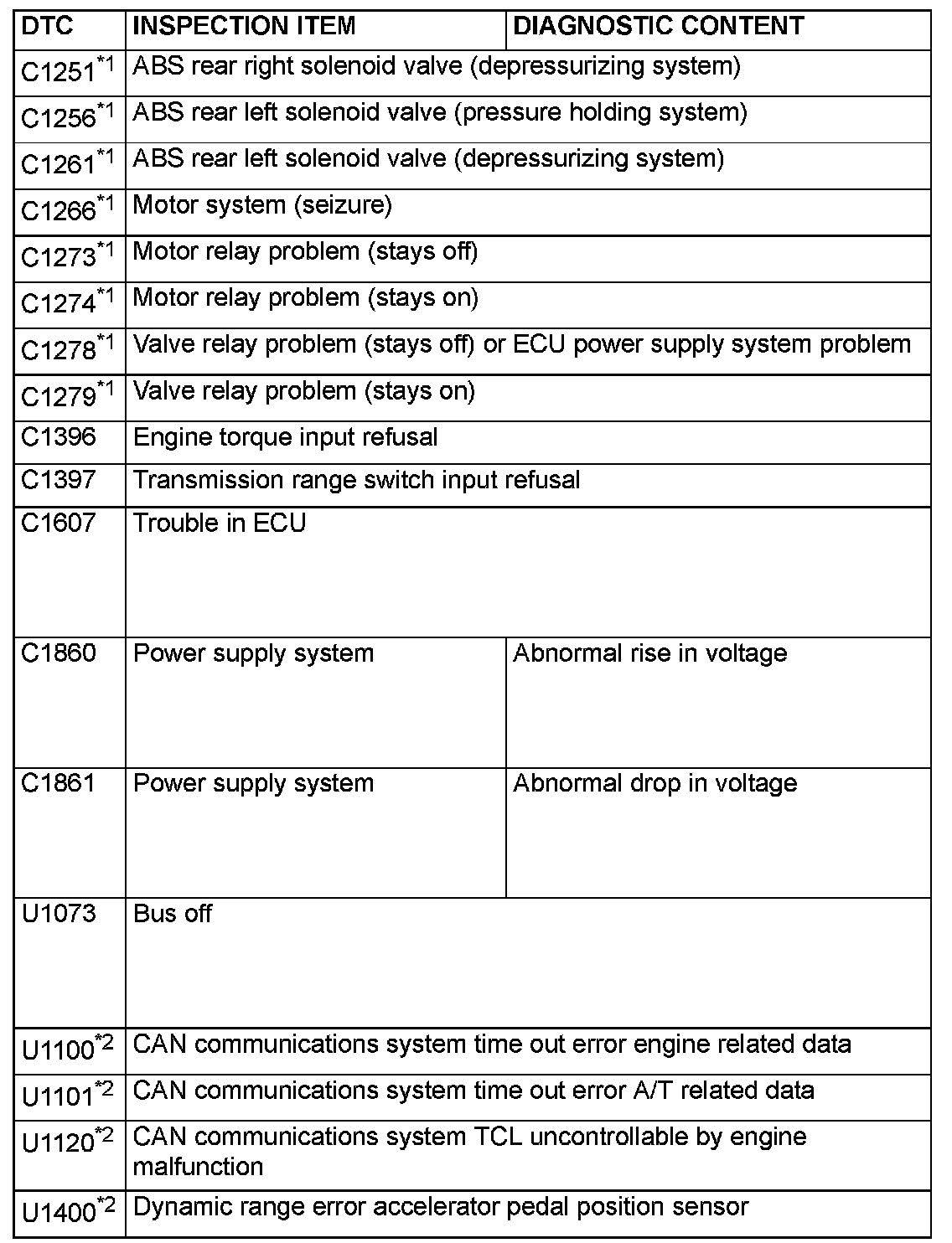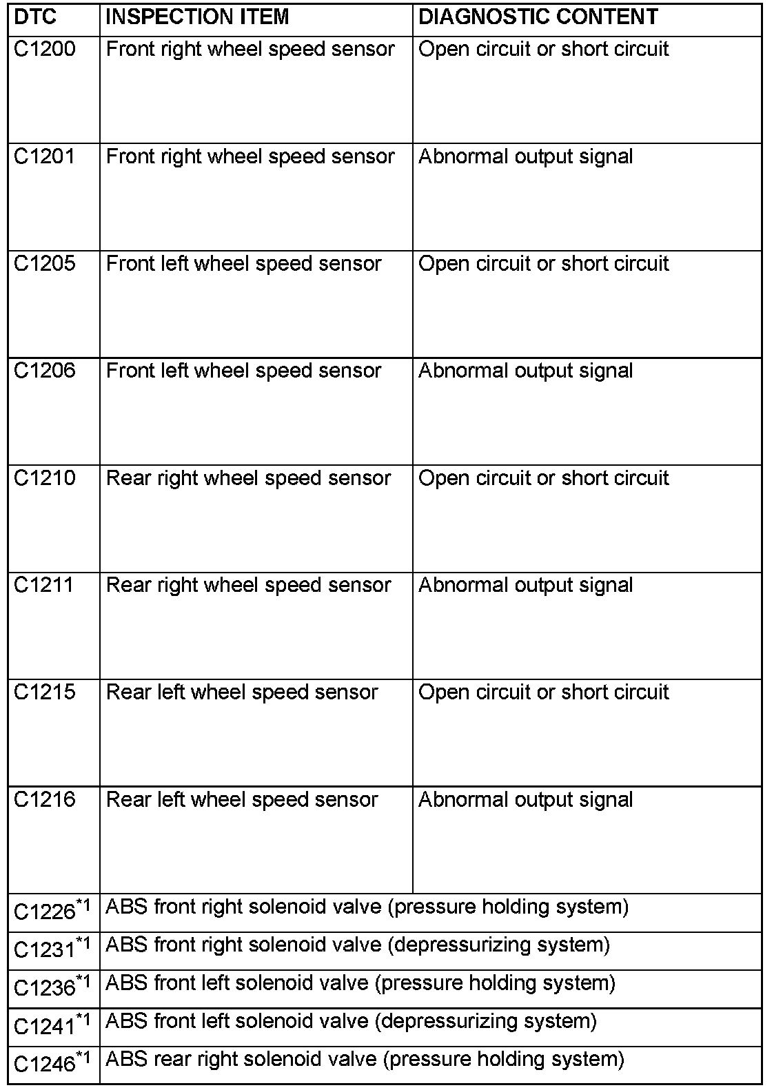 - The inspection contents for the codes (with a *1) used only for the ABS do not described in this group.