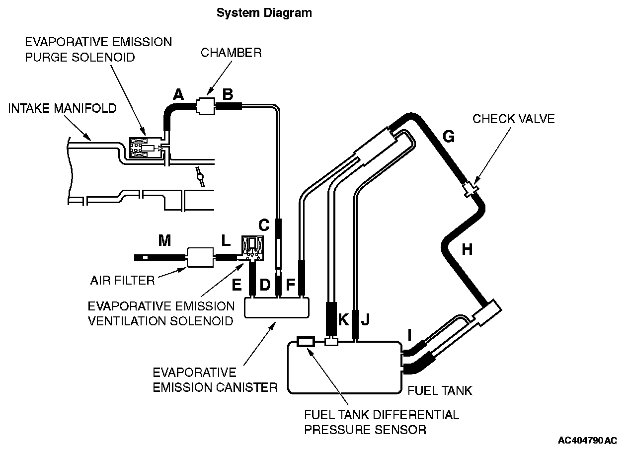 - When the evaporative emission purge solenoid is off, the fuel differential pressure sensor output voltage remains 1.0 volt or less for ten seconds