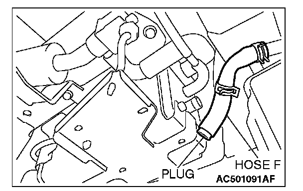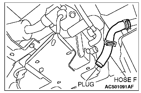 2. Disconnect hose F from the evaporative emission canister, and plug the hose.