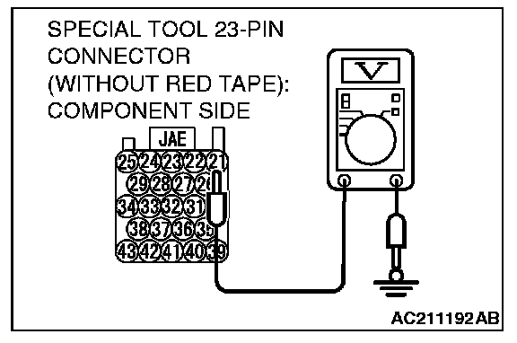5. Measure the voltage between terminal 23 and ground.