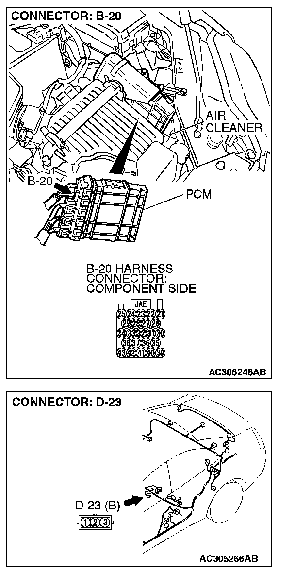 STEP 4. Check PCM connector B-20 for loose, corroded or damaged terminals, or terminals pushed back in the connector.