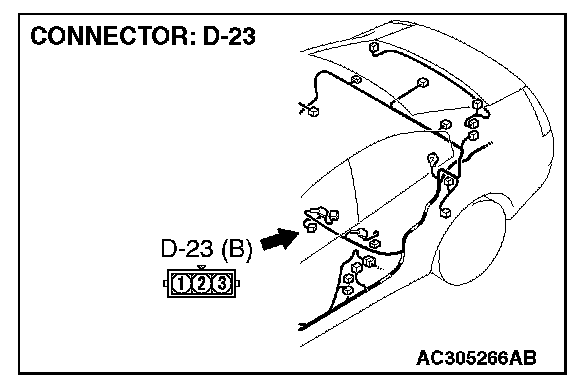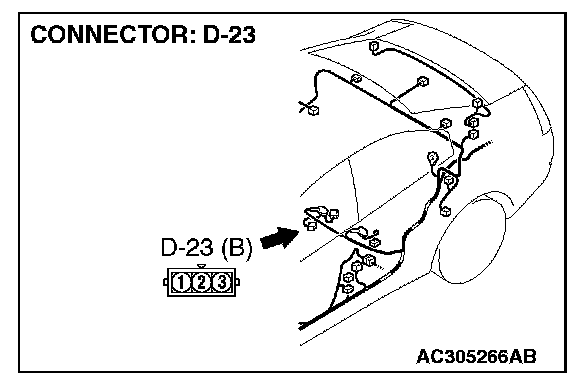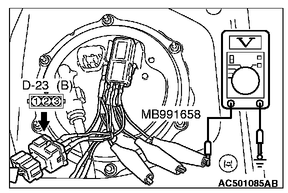 4. Use special tool MB991658 to connect terminals 1,2 and 3 of the fuel tank differential pressure sensor connector D-23.