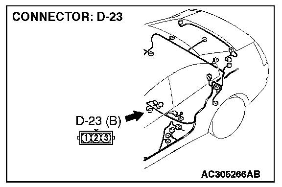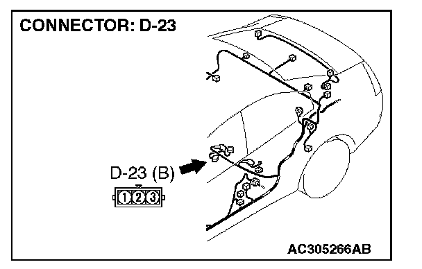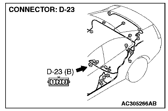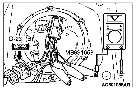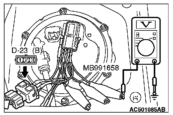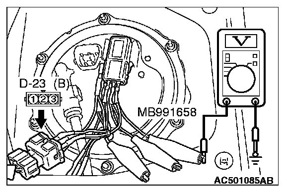 4. Use special tool MB991658 to connect terminals 1,2 and 3 of the fuel tank differential pressure sensor connector D-23.