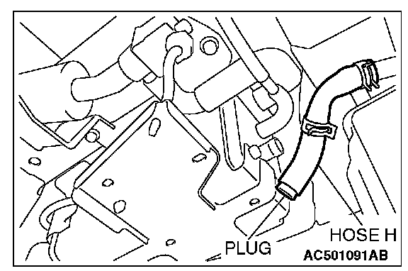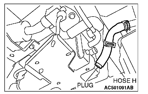 2. Disconnect hose H from the evaporative emission canister, and plug the hose.