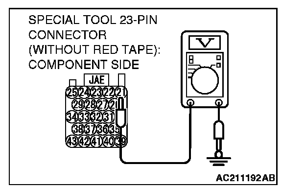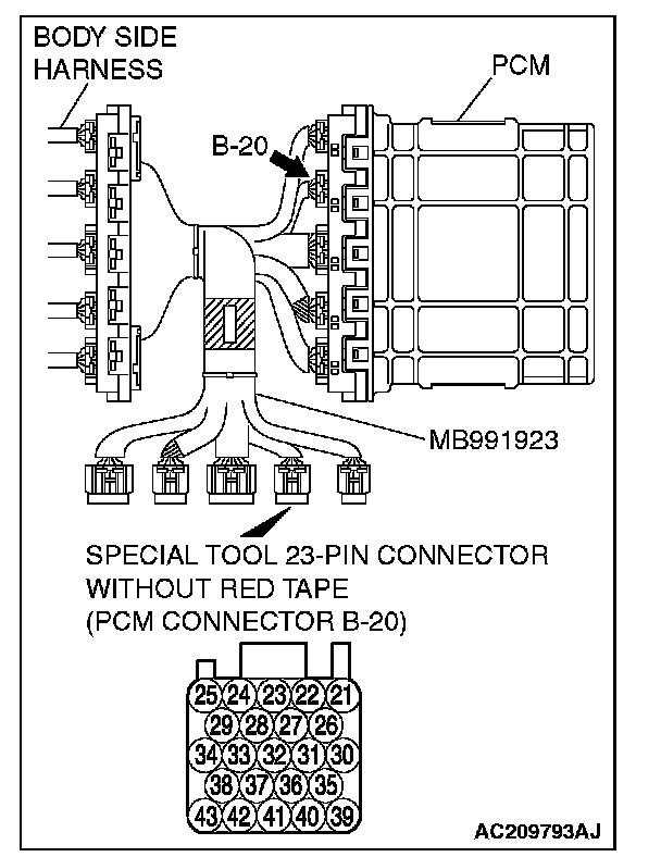 2. Connect special tool MB991923 (check harness) between the PCM and the body-side harness connector.