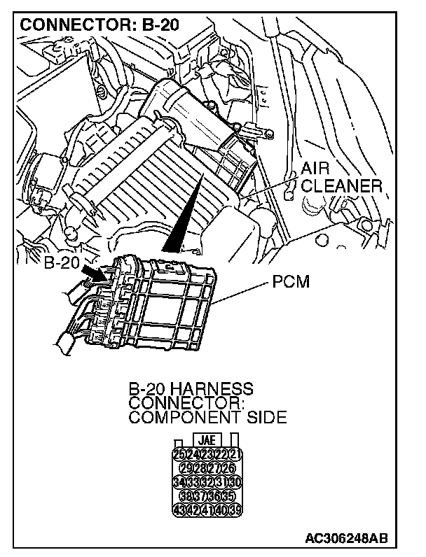 STEP 4. Check PCM connector B-20 for loose, corroded or damaged terminals, or terminals pushed back in the connector.