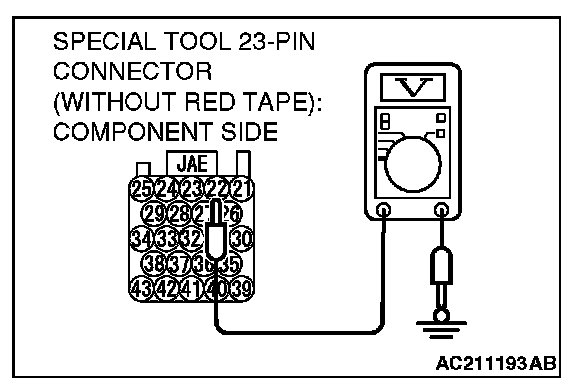 7. Measure the voltage between connector D-23 terminal 1 and ground.