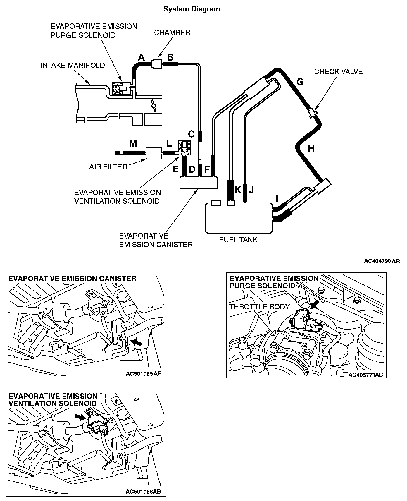 STEP 7. Pressure test the evaporative emission system lines from hoses F to K.