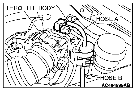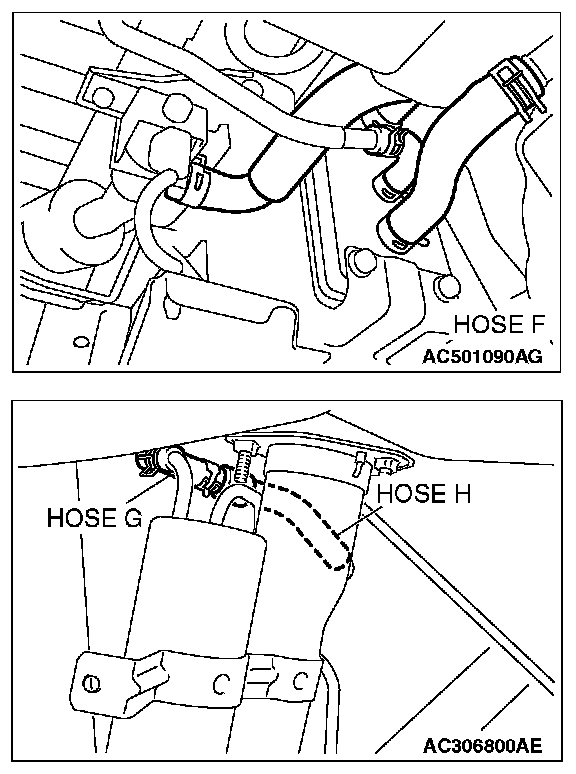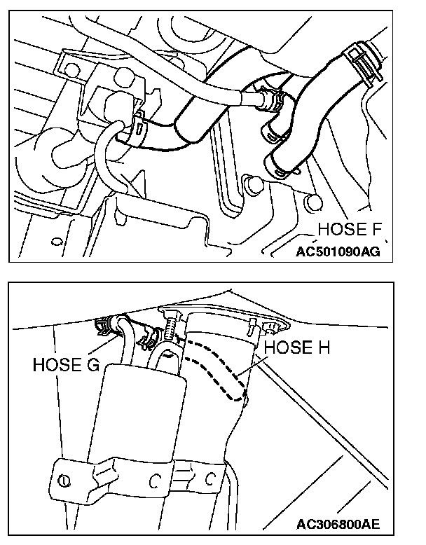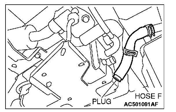 1. Disconnect hose F from the evaporative emission canister, and plug hose F securely.