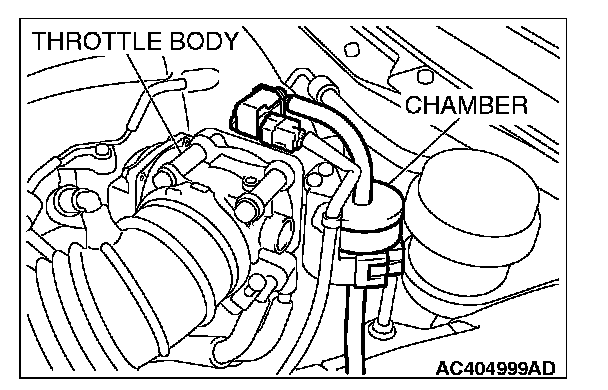 4. Connect the hose of the hand vacuum pump to the intake manifold side nipple of the evaporative emission purge solenoid.