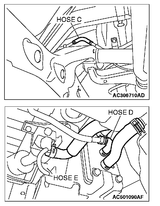 STEP 5. Check for leaks and clogging in evaporative emission hoses C through E.