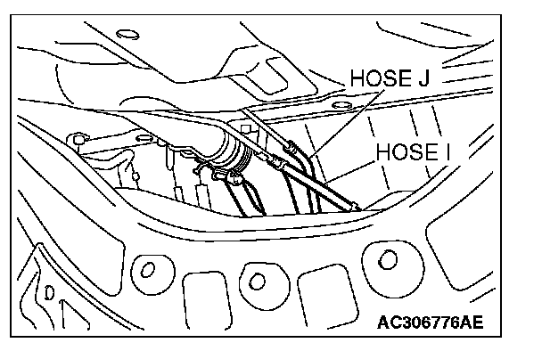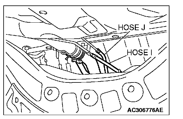 STEP 15. Check for clogging in evaporative emission hoses I and J.