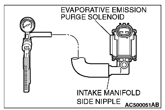 2. Connect the hose of the hand vacuum pump to the intake manifold side nipple of the evaporative emission purge solenoid.