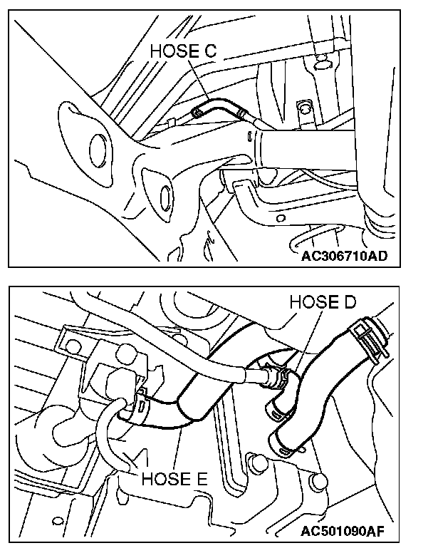 1. Disconnect hose F from the evaporative emission canister, and plug hose F securely.