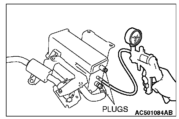 4. Disconnect the hand vacuum pump and remove the plugs, and then install the evaporative emission canister.