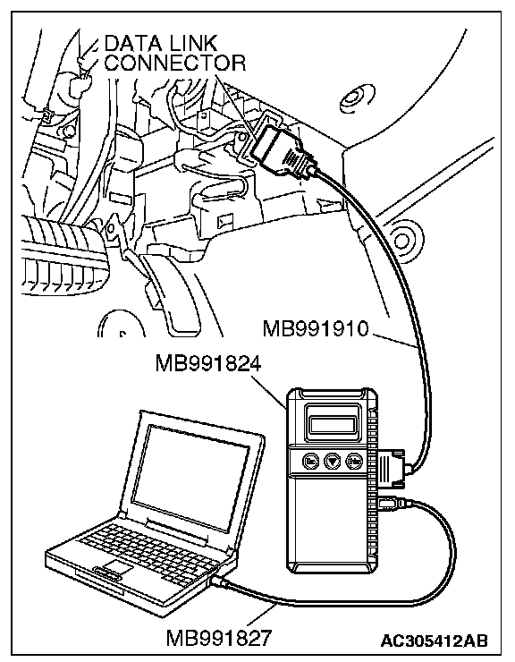 3. Connect special tool MB991827 to special tool MB991824 and the personal computer.