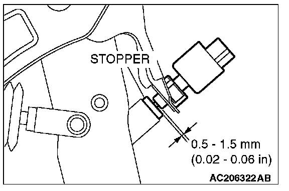 7) Check that the clearance between the stop light switch and the stopper is as shown.