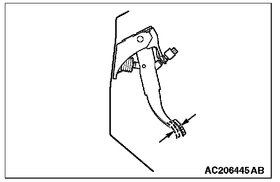 2. Start the engine, depress the brake pedal with approximately 500 N (112 pounds) of force, and measure the clearance between the brake pedal and the dash panel.