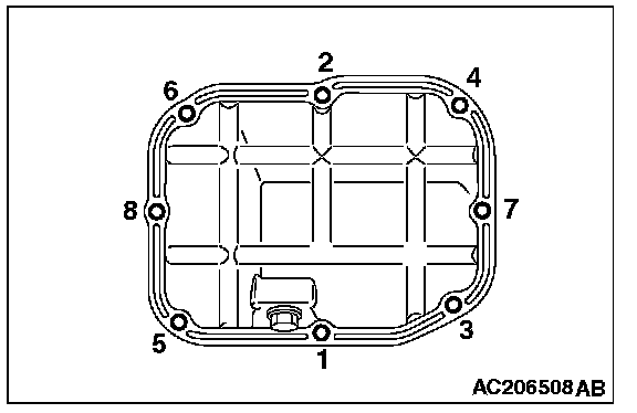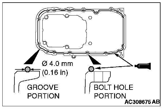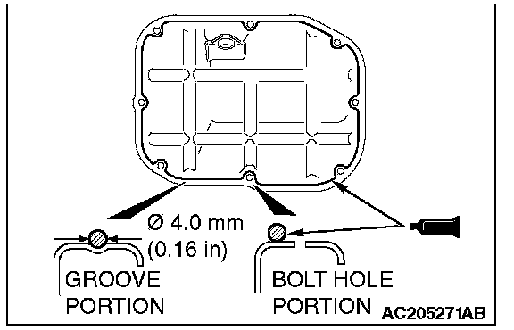 ^ Check the oil pan sealant-coated surface for damage and deformation.