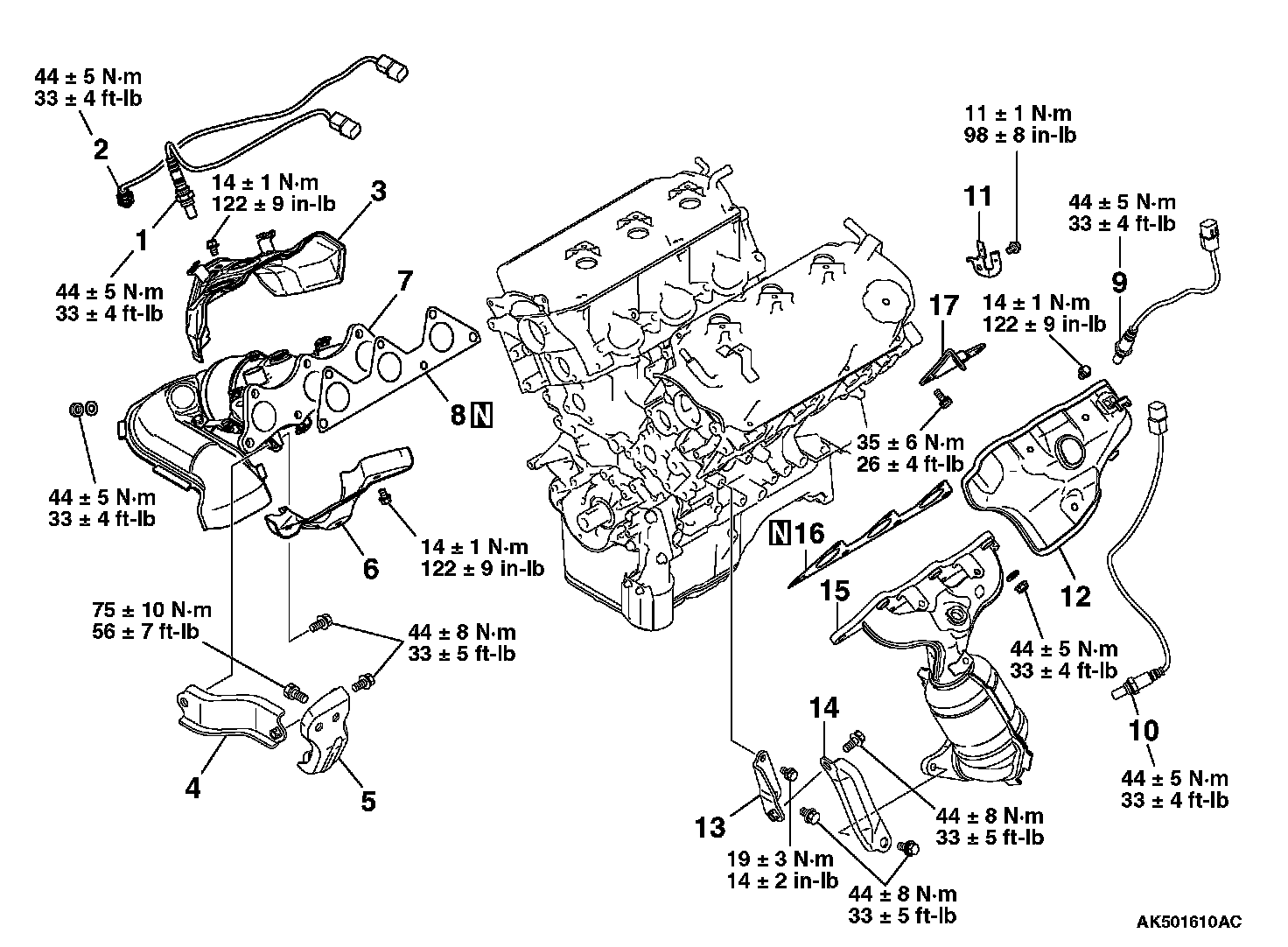 TIGHTENING TORQUE: 44 ± 8 N-m (33 ± 5 ft-lb)