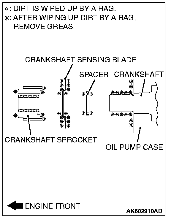 2. Clean and degrease the mating surfaces of the crankshaft sprocket, sensing blade, and spacer.