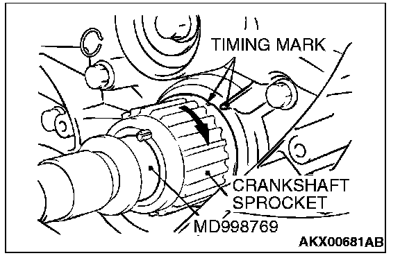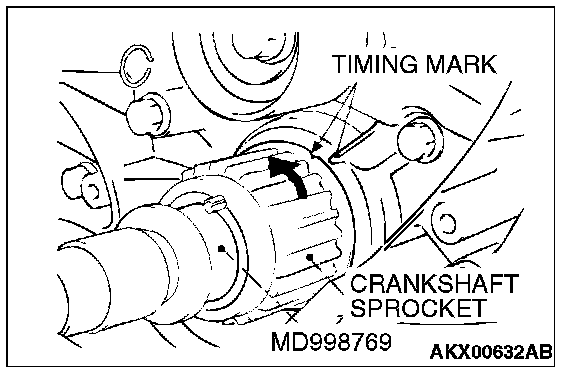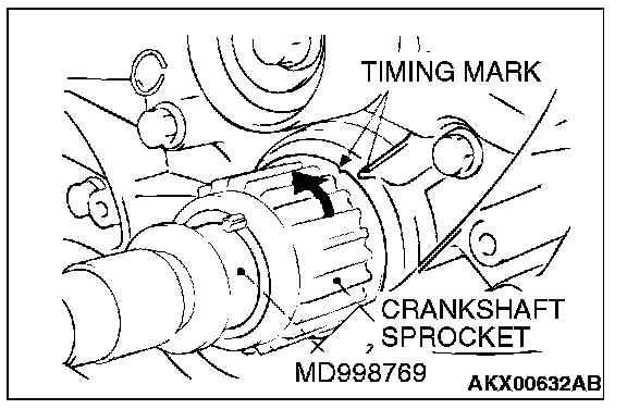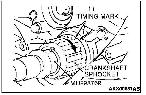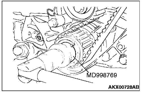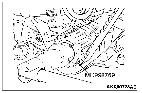 1. Install special tool MD998769 and the crankshaft pulley washer, and then tighten the crankshaft bolt.